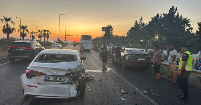 Alanya istikametinden Manavgat yönüne seyir halinde olan 06 COD 427 plakalı servis otobüsüne, aynı yönde ilerleyen Emre U. idaresindeki 34 FBF 802 plakalı Honda marka otomobil sol arka kısmından çarptı. Arkadan gelen Köksal Ç. yönetimindeki 01 BBA 040 plakalı otomobil ise 34 FBF 802 plakalı otomobile çarptı. Üç aracın karıştığı zincirleme kazada, otomobil sürücüsü Köksal Ç. yaralandı. İhbar üzerine olay yerine itfaiye, jandarma, trafik ve sağlık ekipleri sevk edildi. Yaralı sürücü, itfaiye ekiplerinin yardımıyla araçtan çıkarıldıktan sonra, ilk müdahalenin ardından ambulansla hastaneye kaldırıldı.