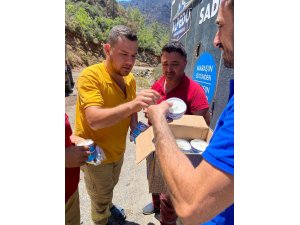 Kahramanmaraş Alpedo ve Kervan Lezzetler Gurubu Marmaris'te çıkan orman yangınını söndürmek için canla başla çalışan kahramanlara dondurma ikramında bulundu.