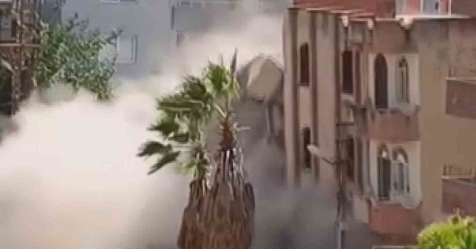Depremin vurduğu Hatay'da 5 katlı bina yıkım esnasında çöktü. Yıkımı izleyen vatandaşların yaşadığı panik ise kameraya yansıdı.