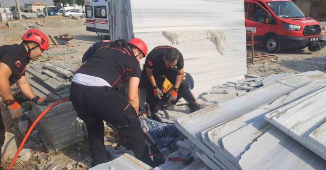 İki işçi mermer blokları altında kaldı. İhbar üzerine olay yerine itfaiye ekipleri sevk edildi. Ekipleri yaralıları kurtararak hazır bekleyen sağlık ekiplerine teslim etti. Ambulansla hastaneye kaldırılan yaralılardan birinin durumunun ağır olduğu öğrenildi.