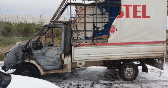 Mersin'in Tarsus ilçesinde ticari araç yanarak kullanılamaz hale geldi.