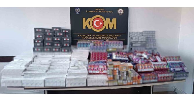 Mersin'de polis ekiplerince yapılan çalışmada, binlerce gümrük kaçağı elektronik sigara, tütün ve puro ele geçirildi.