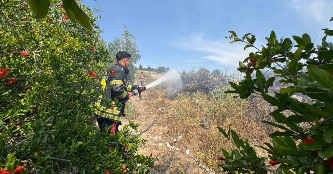 Mersin'de çalılık alanda çıkan yangın, itfaiye ekiplerinin müdahalesiyle nar bahçesine sıçramadan söndürüldü.