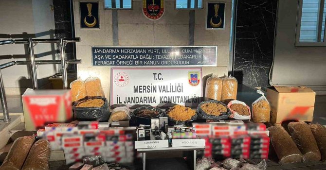 Mersin'in Silifke ilçesinde jandarma ekipleri tarafından düzenlenen operasyonda 34 bin adet makaron, 130 kilogram tütün ile 8 adet elektrikli dolum makinesi ele geçirildi.