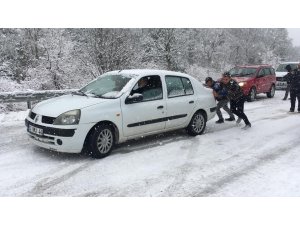 Kar yağışına yakalandıkları için yolda kaldıklarını ifade eden vatandaşlar, zincir takıp yollarına devam etmeye çalışacaklarını söyledi.