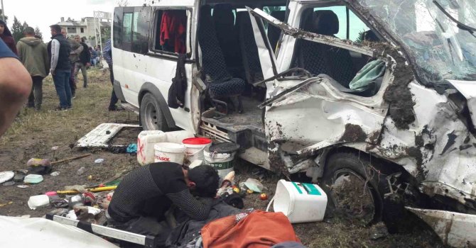 Mersin'in Akdeniz ilçesinde tarım işçilerini taşıyan minibüs ile hafif ticari aracın çarpışması sonucu meydana gelen kazada 1 kişi öldü, 9 kişi yaralandı.