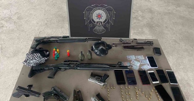Alınan bilgiye göre, İl Emniyet Müdürlüğü ekipleri Erdemli ilçesinde belirlenen bir suç örgütüne yönelik çalışma yaptı. Ekiplerin çalışmasında dolandırıcılık, tehdit, yaralama olaylarına karıştığı tespit edilen şüphelilerin bir adreste birlikte hareket ettikleri ortaya çıkarıldı. Bunun üzerine belirlenen adrese operasyon da düzenlendi. Operasyonda 6 şüpheli yakalandı. Polisin yaptığı aramada 1 adet makineli tabanca, bu silaha ait 1 adet şarjör, 5 adet ruhsatsız tabanca, 2 adet ruhsatsız pompalı tüfek, 144 adet dolu tabanca fişeği, 17 adet dolu tüfek kartuşu, 1 adet plastik maske gözlük, 2 adet plastik el bombası görünümlü replika ele geçirildi.