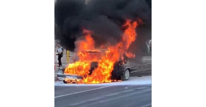 Mersin'de seyir halindeyken alev alan Tofaş marka otomobil, itfaiye ekiplerinin müdahalesine rağmen kullanılamaz hale geldi.