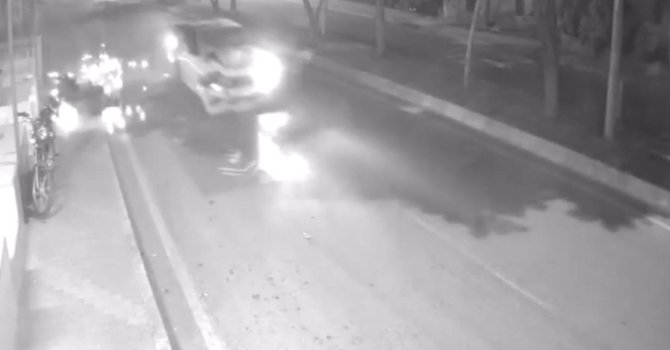 Mersin'in Tarsus ilçesinde aninden yola çıkan motosikletliye araç çarptı, sürücü takla atarak metrelerce sürüklendi. Kaza anı bir iş yerinin güvenlik kamerasına saniye saniye yansıdı.