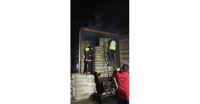 Mersin'in Tarsus ilçesinde pamuk yüklü bir tırın dorsesinde yangın çıktı.