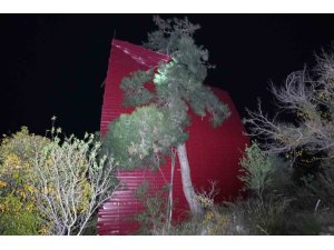 Mersin'de şiddetli rüzgar yerinden söktüğü bir evin çatısını uçurup çam ağacının üzerine savurdu, asırlık bir meşe ağacını da devirdi.