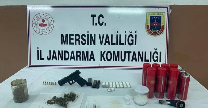 Şüphelinin evinde yapılan aramada,150 gram kubar esrar, 45 gram metamfetamin, 40 adet uyuşturucu hap, 1 tabanca ve 3 uyuşturucu madde kullanma aparatı ele geçirildi.