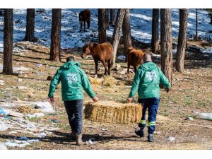Mersin Büyükşehir Belediyesi ekipleri, Tarsus ilçesine bağlı Karboğazı mevkiinde yaşayan yılkı atlarını çayır otu ve arpa ile besledi. Ekipler, bölgede bulunan yabani köpekler için de mama bıraktı.