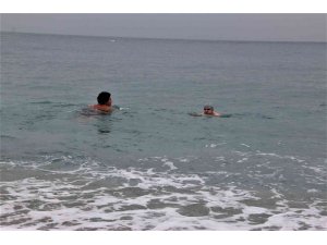 Suyun soğuk olmadığını belirten turist, Antalya'yı da çok sevdiğini söyledi.