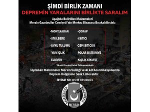 Kahramanmaraş merkezli 10 kenti etkileyen depremler nedeniyle ülke genelinde yardım için seferberlik başlatıldı. Mersin Gazeteciler Cemiyeti de "Şimdi birlik zamanı, depremin yaralarını birlikte saralım" diyerek yardım kampanyası başlattı.