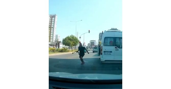Mersin'de bir minibüs şoförü, trafikte tartıştığı aracın önünü keserek içindekilere halatlı saldırıda bulundu. O anlar, otomobilin kamerasına saniye saniye yansıdı.