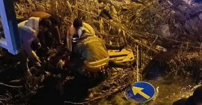 Hatay'da minibüsle çarpışıp su kanalına devrilen motosikletteki 2 kişi yaralandı.