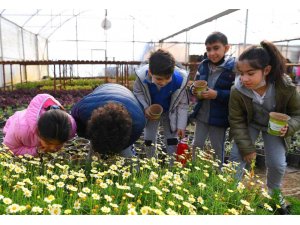 Konyaaltı Belediyesi Fidan Üretim Merkezi'ni ziyaret eden minik öğrenciler, hem uzmanlardan fidan dikimini öğrendi hem de uyguladı.