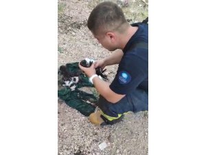 Dumandan etkilenen yavru kediyi kalp masajı ve suni teneffüsle hayata döndürdü