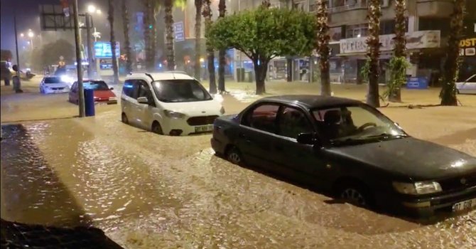 Antalya'nın Kumluca ve Finike ilçelerinde akşam saatlerinde etkisini artıran yağmur sele döndü.