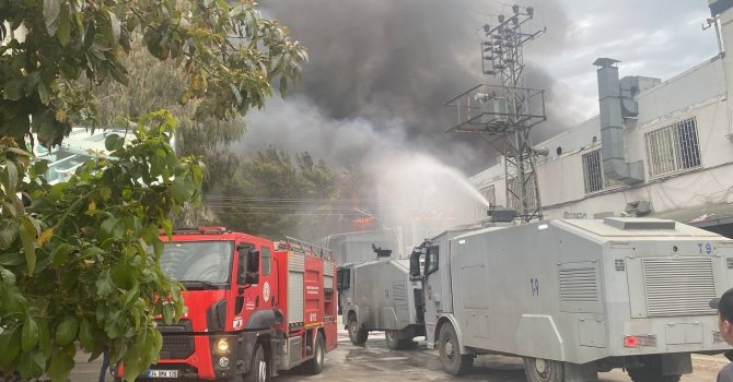 Mersin'de sanayi sitesi içerisinde yer alan mobilya atölyesinde yangın çıktı. İtfaiye ekipleri ile birlikte polisin TOMA araçları da müdahaleye başladı.