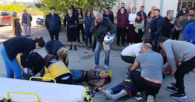 Antalya'da meydana gelen trafik kazasında otomobilin çarptığı motosiklette bulunan 2 genç kız yolun karşı şeridine fırladı. Kazayı duyarak gelen genç kızlardan birisinin babası yerde kanlar içindeki kızını görünce büyük panik yaşarken güçlükle sakinleştirildi.