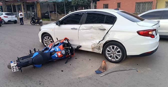 Adana'nın Kozan ilçesinde otomobil ile motosikletin çarpışması sonucu meydana gelen trafik kazasında motosiklet sürücüsü yaralandı, otomobil maddi hasar gördü.