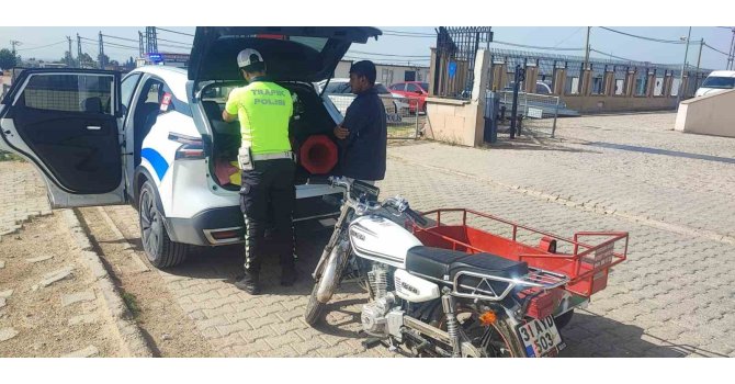 Hatay'da sepetli motosikletin üzerine yatarak yanındaki 2 kişinin de canını hiçe sayan sürücüye 24 bin 997 TL cezai işlem uygulandı.