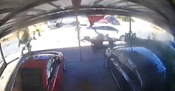 Hırsızlığa girişim olayı, dün saat 14.00 sıralarında Kepez ilçesine bağlı Varsak Gündoğmuş Mahallesi'ndeki bir iş yerinin önünde gerçekleşti. Motosikletini çalıştığı iş yerinde önüne koyan Ali Öğür (43), kimliği belirsiz bir kişinin hareketlerinden şüphelendi. Şahsın, Türk bayrağının altındaki motosikletine yöneldiğini ve çalma girişiminde bulunduğunu fark eden Öğür, iş yerinden hızlıca koşup şüpheliyi yakalamak istedi. Motosiklete yaklaştığından balıklama atlayış gerçekleştiren Öğür, şüphelinin ani refleks gösterip kaçasıyla boşlukta kalıp yere düştü. Hırsızlık şüphelisi olay yerinden kaçarken, terliğinin teki ise Öğür'ün elinde kaldı. O anlar, iş yerinin güvenlik kamerasına saniye saniye yansıdı.