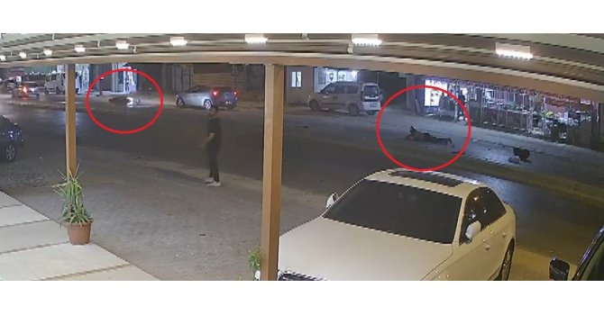 Hatay'ın Antakya ilçesinde rögar kapağının yerinden oynamasıyla motosiklet sürücüsünün uçarak metrelerce sürüklendiği anlar güvenlik kamerasına yansıdı.