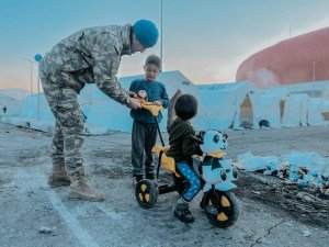 Milli Savunma Bakanlığı, Hatay'da Mehmetçiğin bir araya geldiği depremzede çocukların yüzünü güldüren anları paylaştı.