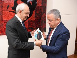 Konyaaltı Belediye Başkanı Muhittin Böcek Antalya’daki yaşamını, 25 yıllık siyasi hayatında yaşadığı olumlu ve olumsuz herşeyi yazdığı “Ben Bu Şehra Aşığım” kitabını Chp Genel Başkanı Kemal Kılıçdaroğlu’na hediye etti. Böcek sosyal medya hesabında yaptığı açıklamada, “Genel Başkanımız Sayın Kemal Kılıçdaroğlu’nu makamında ziyaret etti. Antalya sevdamı ve hayatımı kaleme aldığım “Ben Bu şehre Aşığım” isimli kitabımı imzalayıp, kendisine taktim ettim” dedi. Mahsum ALTAŞ