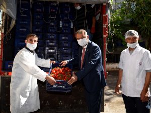 Demre Yaş Sebze ve Meyve Toptancı Hali’nde bulunan komisyoncular ve üreticilerin doldurduğu kamyon İl Başkanı Nusret Bayar ve yönetim kurulu üyelerince Muratpaşa Belediyesi aşevine teslim edildi. Destekler tek tek kayıt altına alınarak aşevi görevlilerince teslim alınırken CHP İl Başkanı Nusret Bayar, şöyle konuştu:
