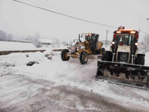İlçenin yüksek kesimlerinde yol açma ve tuzlama çalışması yürüten ekipler, gelen ihbarlar üzerine mahsur kalan vatandaşların imdadına yetişiyor.
