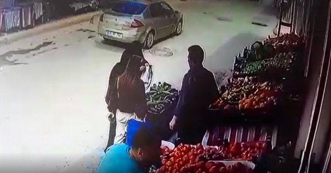 Çevredeki vatandaşların kadınlara saldıran U.Ş.'ye gösterdiği tepki ve yaşanan saldırı anları saniye saniye marketin güvenlik kamerası tarafından kaydedildi.