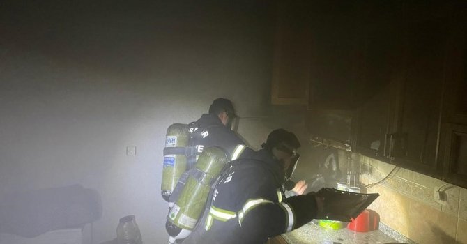Çıkan yangında mutfakta maddi hasar oluşurken alevlerin mutfak tüpüne ulaşmaması büyük bir facianın önüne geçti.