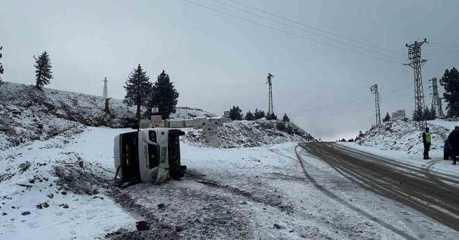 Kaza, saat 17.30 sıralarında ilçeye bağlı 1600 rakımda bulunan Sorgun Mahallesi sınırlarında meydana geldi. Alınan bilgiye göre, Murat S. (34) idaresindeki 33 AKJ 880 plakalı servis minibüsü, karlı buzlu yolda kayarak devrildi. Yan yatan minibüste bulunan meslek lisesinde eğitim gören 6 öğrenci ile sürücü kazadan yara almadan kurtuldu. Durumun bildirilmesi üzerine bölgeye jandarma ve sağlık ekipleri sevk edildi. Korku yaşayan öğrencilerin sağlık kontrollerinin yapıldığı olumsuz bir durum olmadığı öğrenildi.