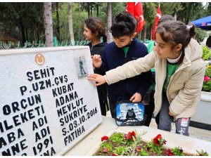 Adana'da Kışla Şehit Orçun Kubat İlkokulu öğrencileri, okullarına ismi verilen şehidi mezarı başında ziyaret edip dua etti. Ayrıca öğrenciler mezara karanfil bıraktı.