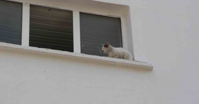 Antalya'nın Kumluca ilçesinde okulda mahsur kalan kedi, pencere dışına çıkınca vatandaşları ve ekipleri alarma geçirdi.