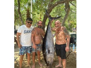 Mersin'de bir lojistik firmasında çalışan Orkun Altınöz, her hafta sonu olduğu gibi bu hafta sonu da 2 arkadaşıyla birlikte Silifke ilçesinde tekneyle denize açıldı. 3 arkadaş bir yandan Akdeniz'in sıcağında denize girip serinlerken, bir yandan da oltayla balık avlamaya başladı. Bir süre sonra Orkun Altınöz'ün oltasına dev bir orkinos balığı takıldı. Tekneye yanaştırılan balığın büyüklüğünü gördüklerinde şaşkınlıklarını gizleyemeyen amatör balıkçılar, dev orkinosu çıkarmak için zorlu bir mücadele verdi.