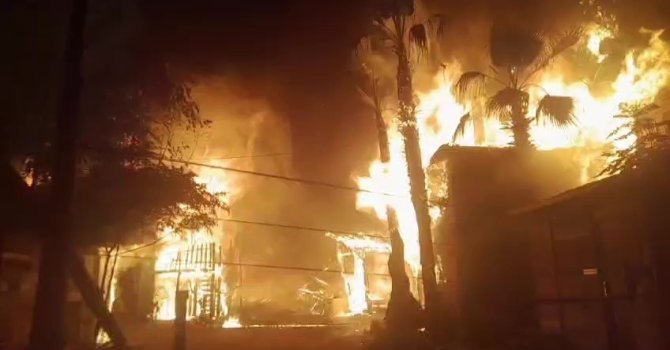 Olympos'ta bulunan Kadir's Ağaç Evleri gece saatlerinde meydana gelen yangında ikinci kez tamamen yandı.
