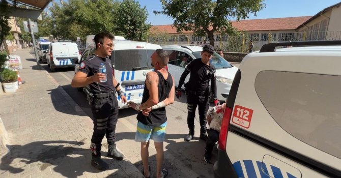 Kahramanmaraş'ta kimlik sorgusu için durdurulan iki şüpheli bir müddet polisle tartıştı, gözaltına alındıktan sonra da polislerin elinden su içti.