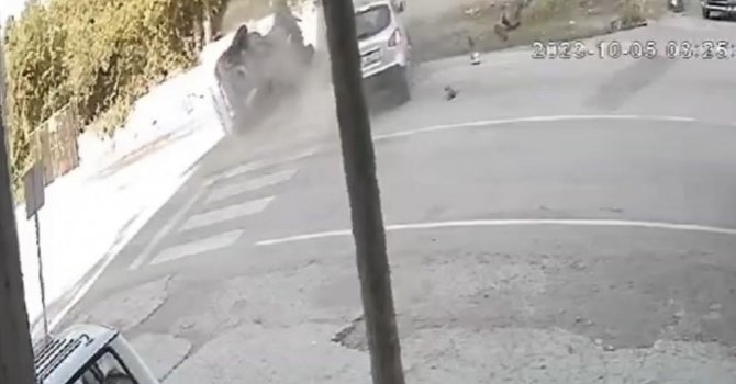 Kaza anı çevredeki bir iş yerinin güvenlik kamerasınca saniye saniye kaydedildi.