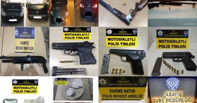 Osmaniye İl Emniyet Müdürlüğü ekipleri, 5-12 Aralık'ta kent genelinde asayiş uygulamaları yaptı. Çalışmalarda, çeşitli suçlara karıştıkları öne sürülen 218 şüpheli gözaltına alındı. Emniyetteki işlemlerinin ardından adliyeye sevk edilen zanlılardan 8'i tutuklandı.