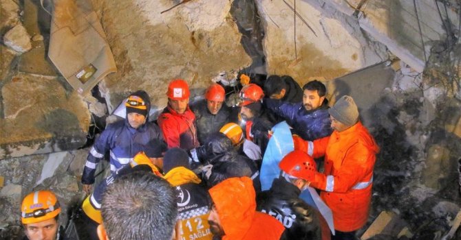 Osmaniye'de depremde enkaz altında kalan Doğan Akçakaya, 15 saatin ardından ağır yaralı olarak enkaz altından çıkartıldı. Hemşire eşi Naciye Akçakaya'yı ise kurtarma çalışmaları devam ediyor.