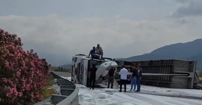 Osmaniye'de gübre yüklü tır sürücüsünün direksiyon hakimiyetini kaybetmesi sonucu devrildi, sürücü yaralandı.