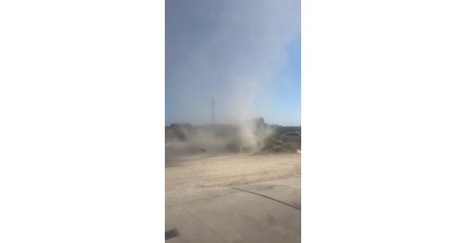 Osmaniye'de şiddetli rüzgarın oluşturduğu küçük çaplı hortum, sanayi esnafının cep telefonu kamerasına yansıdı.