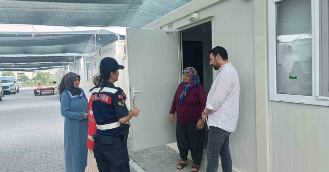 Osmaniye'nin Kadirli ilçesinde jandarma konteyner kentte kalan kadınlara KADES'i tanıtarak, kadına yönelik şiddete karşı farkındalık oluşturdu.