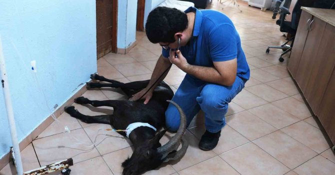 Antalya'nın Kemer ilçesinde yaralı halde bulunan dağ keçisi, Kemer Belediyesi Hayvan Barındırma Tedavi ve Rehabilitasyon Merkezi'nde tedavi altına alındı.