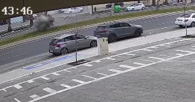 Kaza anı bir iş yerinin güvenlik kamerasına saniye saniye yansıdı. Görüntülerde, otomobilin hızla seyrederken ağaca çarpması ve sonrası görüldü.